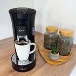 Cooking in an equipped kitchen is possible due to a microwave oven, a refrigerator, and kitchenware provided. Ensuring that guests have a comfortable stay, this apartment includes coffee and tea makers as self-catering amenities.